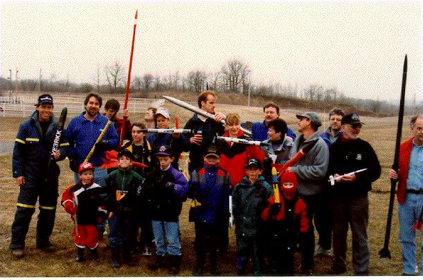 1997This is a group picture from the 1997 Annual Easter Model Rocket Launch. At the left is Bob (VE3RKK), and myself Kevin (VE3KH) to the right of him, and Kyle in front of me (green jacket).